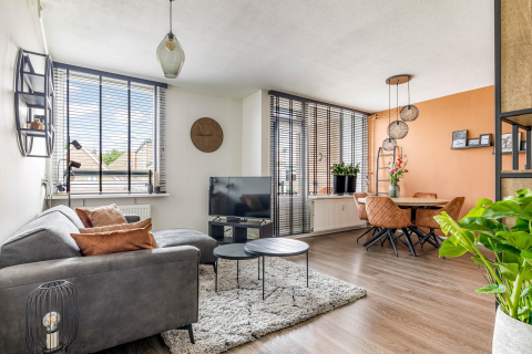 De open keuken is gesitueerd aan de achterzijde en biedt mooi zicht op de tuin. De keuken is uitgevoerd in een lichte kleurstelling, geplaatst in een hoekopstelling en voorzien van diverse inbouwapparatuur, zoals een vaatwasser, inductiekookplaat (vernieuwd in 2022) en combi-oven/magnetron. Dankzij de ruime kastruimte en de eettafel centraal in de ruimte voelt dit als een echte woonkeuken: een fijne plek waar je samenkomt.